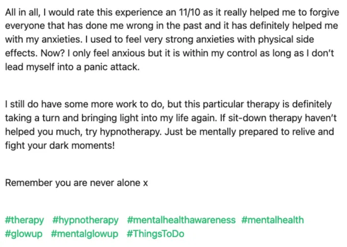 Read Miglė’s testimonial on how hypnotherapy helped her overcome imposter syndrome.